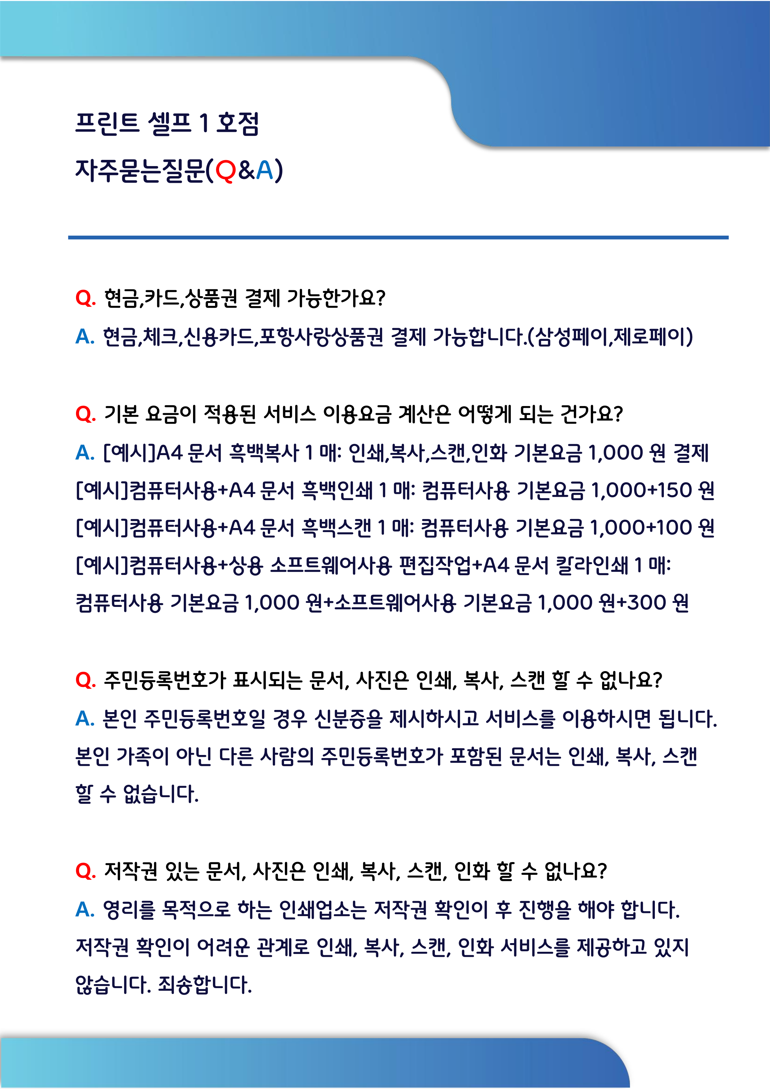 프린트 셀프 자주 묻는 질문