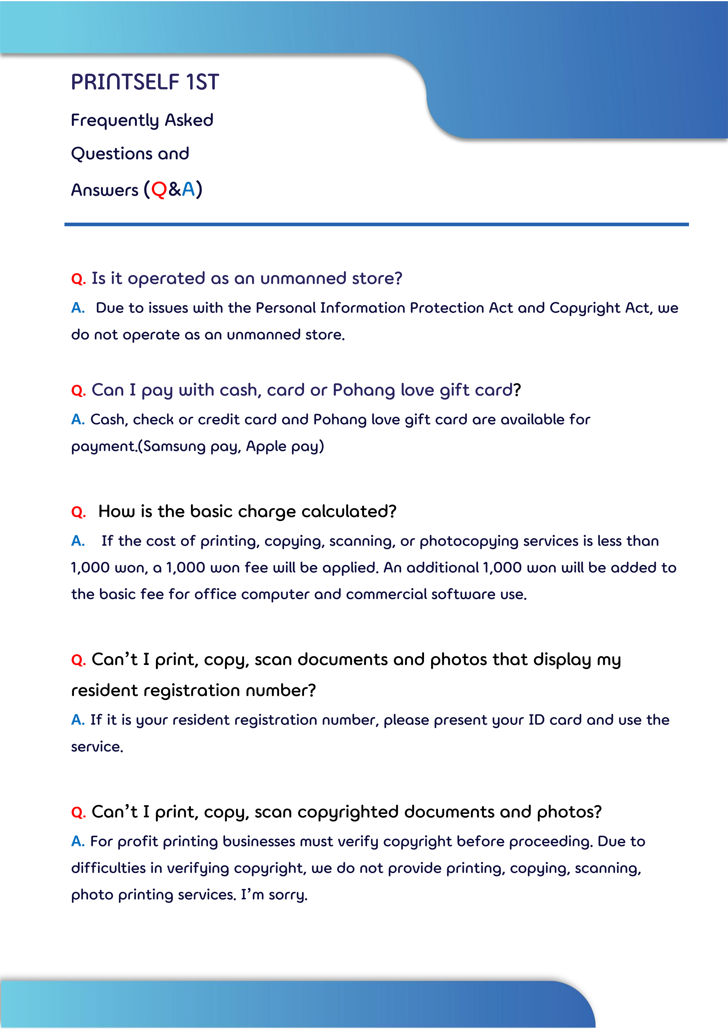프린트 셀프 자주 묻는 질문